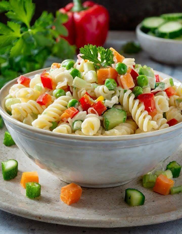 1 lb. shell pasta or your preferred pasta shape -1 cup diced celery -1 cup diced cucumber -1 cup diced red onion -1 cup diced red pepper -1 cup diced green pepper -1 cup frozen peas -1/2 cup mayonnaise -1/2 cup sour cream -1/4 cup white vinegar -1/4 cup sugar -1 teaspoon garlic powder -1 … Read more