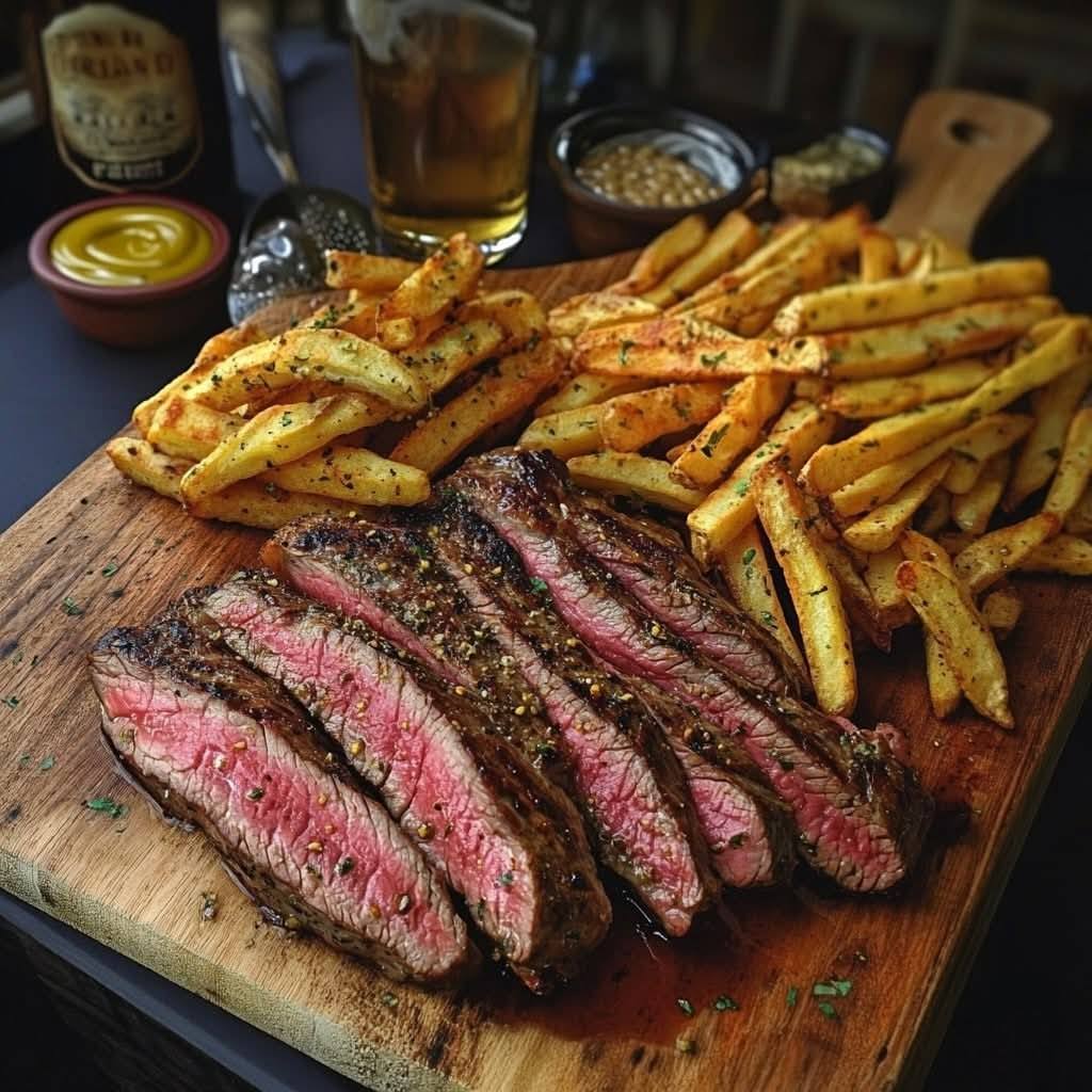 Few dishes embody timeless, effortless elegance like **Steak Frites**. Born from the kitchens of French bistros, this beloved combination of perfectly seared steak and golden, crispy fries has earned a spot on menus across the world—and for good reason. Now, imagine serving this classic not on a plate, but beautifully arranged on a **rustic wooden board**, transforming a simple meal into a stunning, shareable centerpiece.